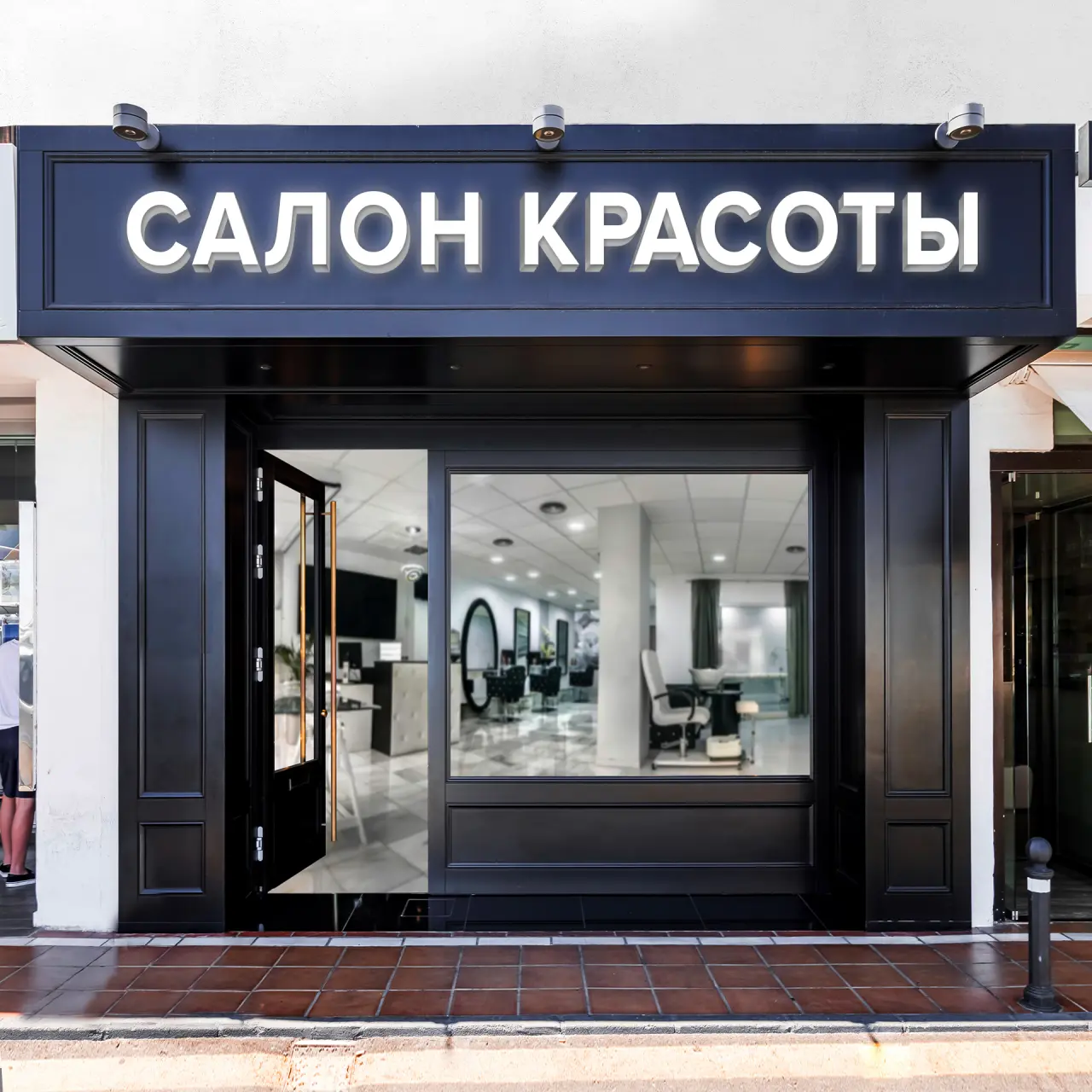 Светодиодная вывеска «САЛОН КРАСОТЫ» на фасад. Мы предлагаем профессиональное изготовление вывесок в Махачкале, адаптированное под эстетику индустрии красоты. Вывеска изготовлена с акцентом на элегантность и чистоту линий. Конструкция представляет собой объемные буквы из ПВХ, оклеенного белой виниловой пленкой, с лицевой панелью из литого акрилового листа. Используется светодиодная лента с фронтальной подсветкой, которая создает мягкое, равномерное и ненавязчивое свечение. Современный шрифт Proxima Nova Bold. Вы можете полностью персонализировать вывеску. Доступна замена текста на название вашего салона, добавление фирменного логотипа или стилизованных иконок (цветок, силуэт, бабочка). Можно выбрать цвет свечения, тип крепления. Комплектация: буквы, светодиоды, блок питания. Срок производства: 4-7 рабочих дней. Гарантия: 2 года. Чтобы заказать вывеску, свяжитесь с нами для консультации.